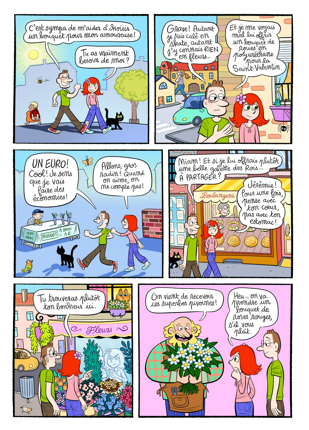 panel 3 : il se prépare pour la st valentin, donc c'est pas le 1er mai, l'ombre du chat projette un lapin